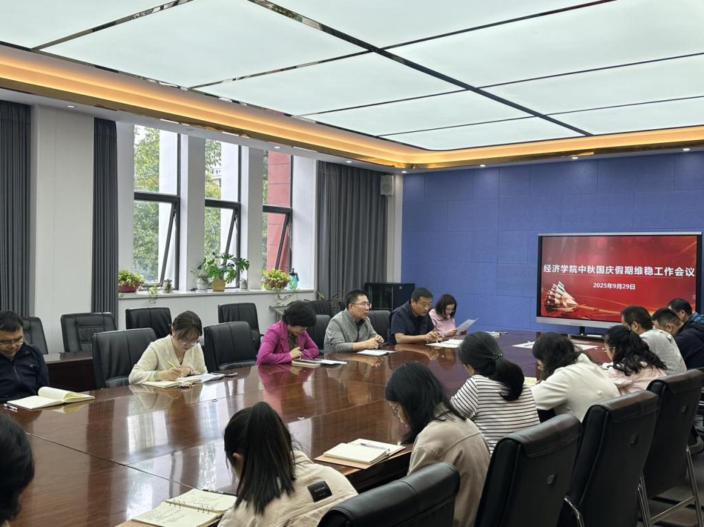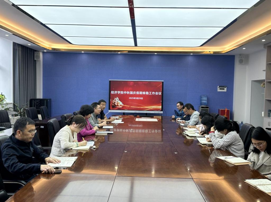 为确保2025年中秋国庆双节期间校园安全稳定,统筹做好各项工作,9月29日,经济学院在明德楼211会议室召开假期安全维稳工作专题会议。学院党政领导班子成员、各办公室负责人、全体行政人员出席会议。