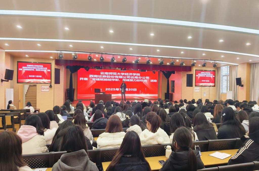 为积极响应金融行业数字化转型与绿色金融发展对高素质人才的需求,深化校企协同育人机制。2025年11月20日下午,我院与西南证券股份有限公司云南分公司在联大校区田家炳书院416报告厅联合举办“党建赋能绽华彩、团建聚力纷校园”主题活动。本次活动以“新时代、新金融、新青年”为主题,通过党建共建引领,汇聚校企力量,共同探索“党建+金融”育人新路径。