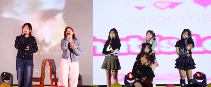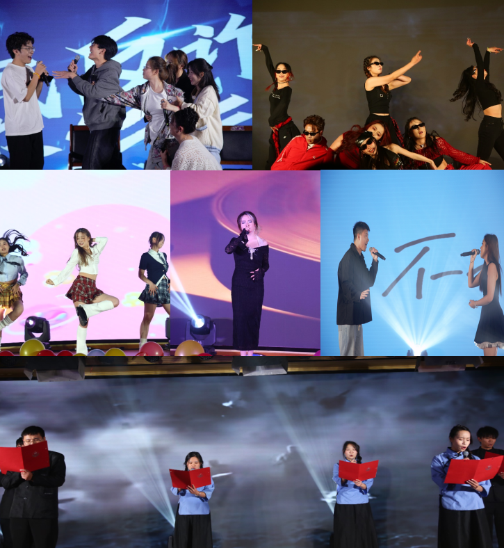 第一篇章“经时相遇”,青春气息扑面而来。动感十足的舞蹈《元气青春》瞬间点燃全场;一曲深情对唱《是妈妈是女儿》用温柔的旋律传递牵挂与成长的共鸣,让不少同学红了眼眶。歌曲《落空》《挚友》唱出了青春的青涩与友谊的珍贵;独舞《时候》以优美的舞姿诠释了东方神韵;流行舞《shape of you》则将现场气氛推向高潮,让新生们在艺术展演中感受校园文化的活力。