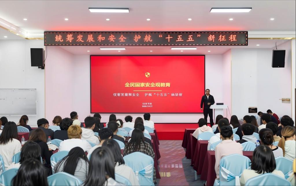 为深入贯彻落实总体国家安全观,增强学生国家安全意识,4月中旬,经济学院以“统筹发展和安全 护航‘十五五’新征程”为主题,组织250名学生代表开展总体国家安全观教育培训。学院党委副书记戴建友主持培训。