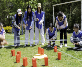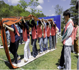 随着教练的哨声响起,活动进入项目展示环节。全体同学精神饱满,正式投入拓展挑战。在“队名大比拼”环节,各队创意迸发,响亮的队名、激昂的口号,不仅是团队个性的彰显,更是集体归属感的初次凝聚;在“无敌风火轮”与“合力筑塔”项目中,同学们分工明确、配合默契——有人统筹规划,有人动手实操,有人鼓劲加油,每一次传递、每一处衔接,都在无声中拉近心与心的距离,锤炼出真正的团队默契;而“一圈到底”项目则将氛围推向高潮,大家凝心聚力、无缝衔接,在欢声笑语中突破自我,也让信任与包容在彼此心间生根发芽。